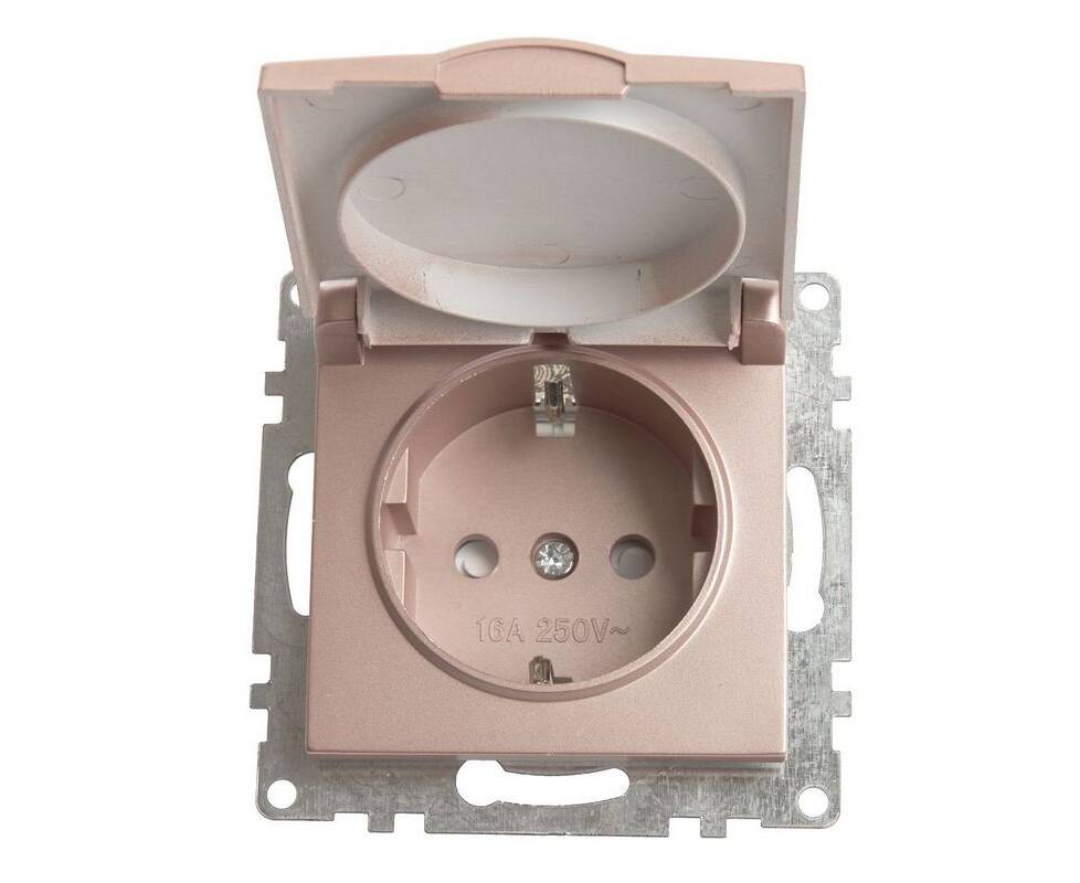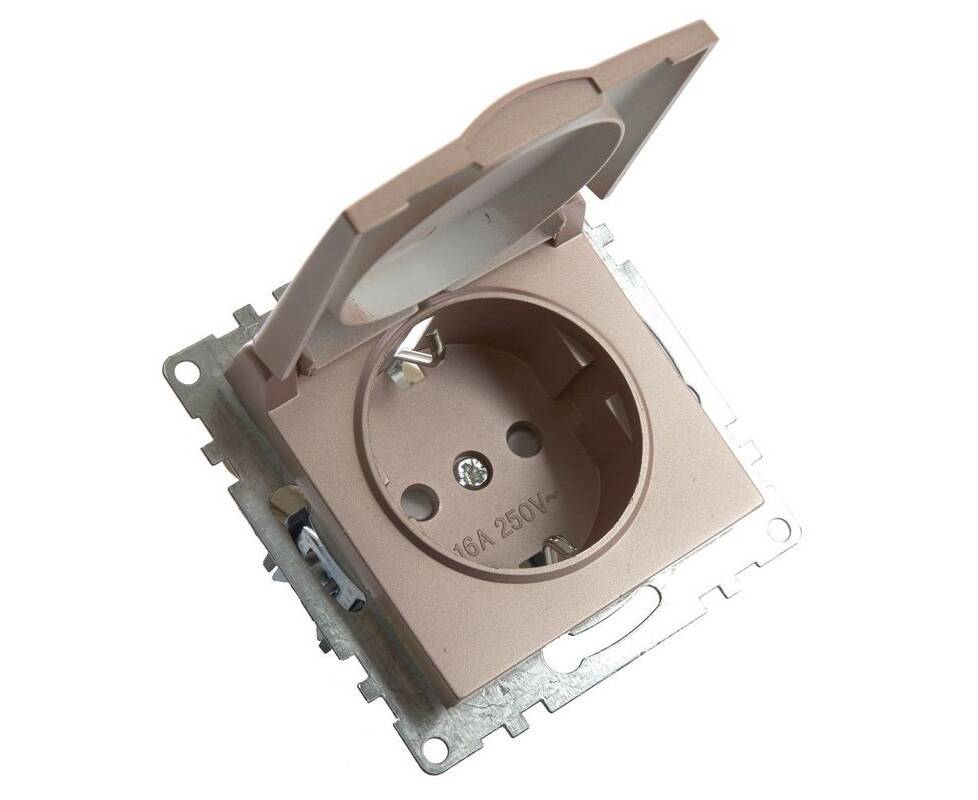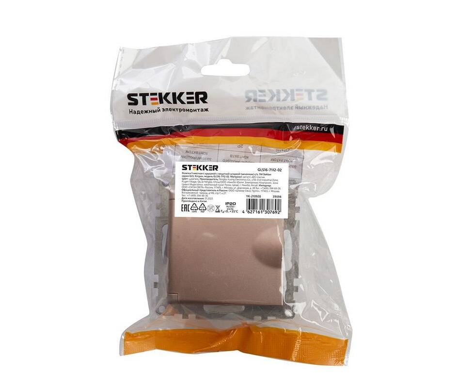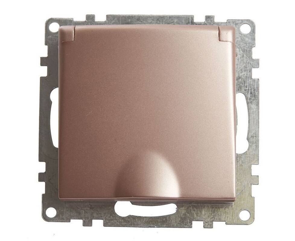 Розетка 2P+PE Stekker Катрин со шторками крышкой шампань GLS16-7112-02 39594