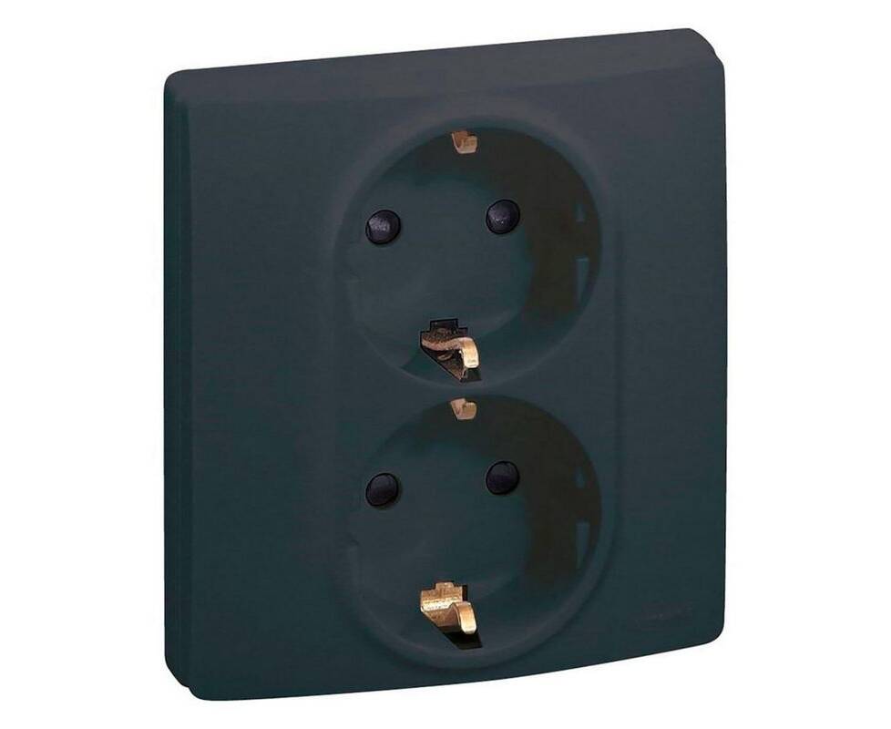 Розетка 2п+З 220В двойная (в одну монтажную коробку) винты, антрацит