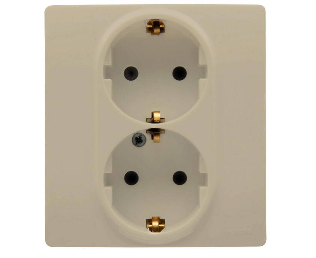 Розетка 2X2К+З Legrand Etika 16A 250V со шторками немецкий стандарт слоновая кость 672333