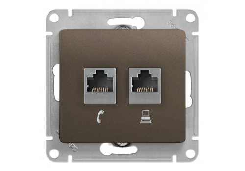 Розетка 2xRJ11+RJ45 Cat.5 Systeme Electric GLOSSA, шоколад