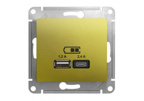 Розетка 2xUSB Systeme Electric GLOSSA, скрытый монтаж, фисташковый