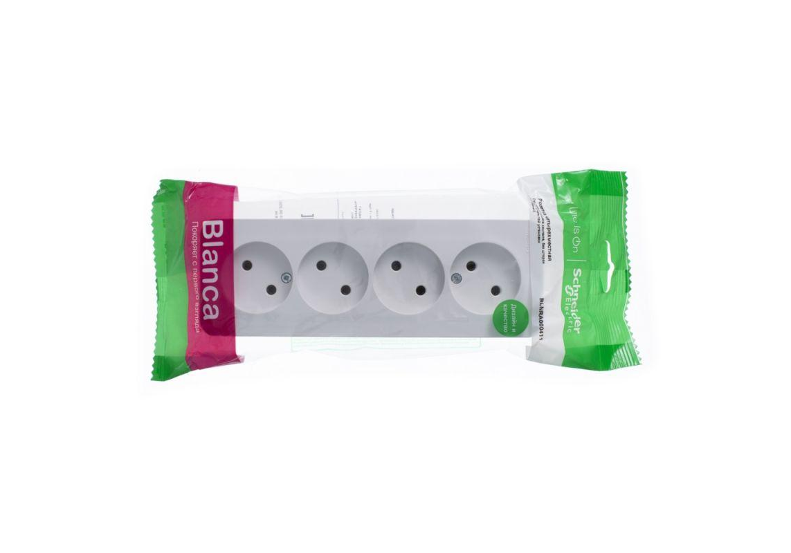 Розетка четырехместная Systeme Electric BLANCA, открытый монтаж, без заземления, белый