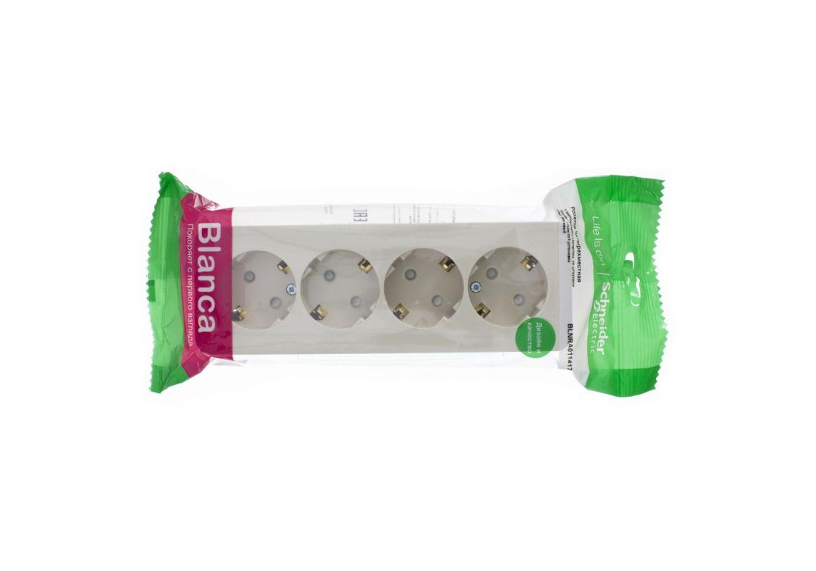 Розетка четырехместная Systeme Electric BLANCA, открытый монтаж, с заземлением, со шторками, бежевый