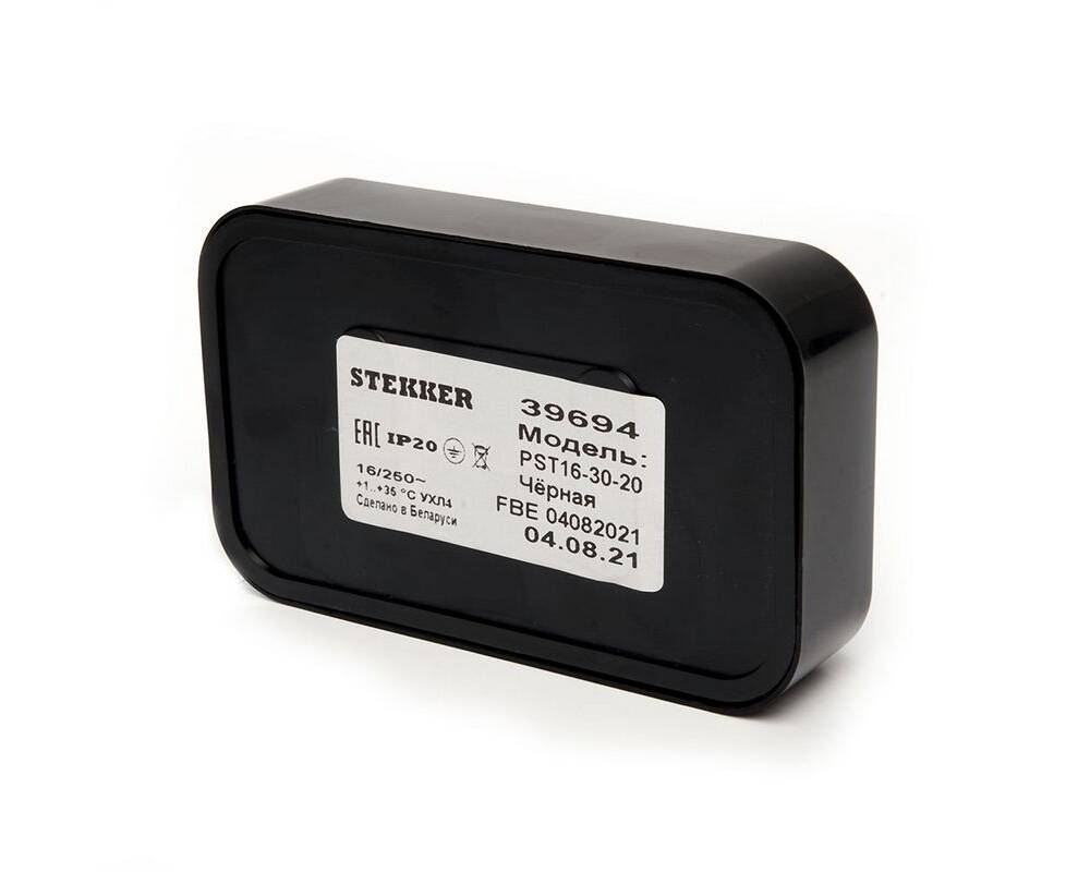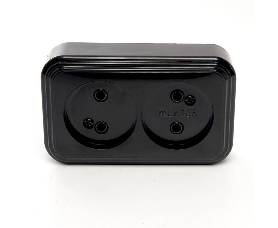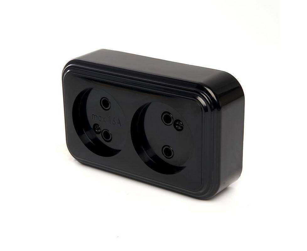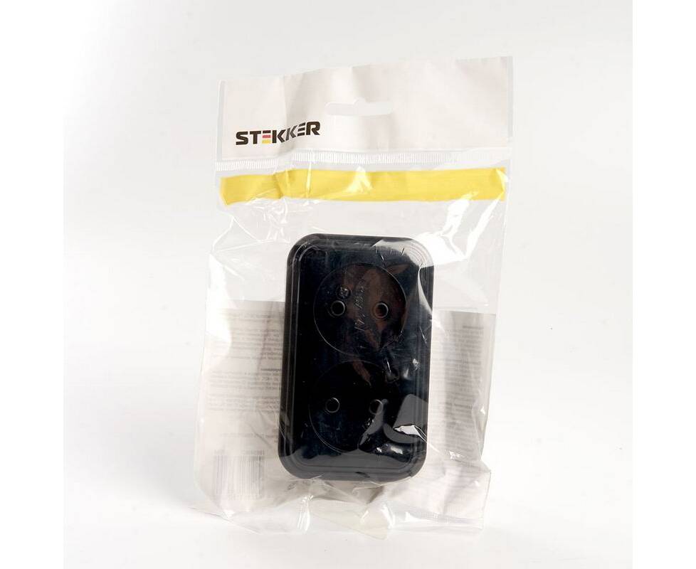 Розетка двойная 2P Stekker Брест черный PST16-30-20 39694