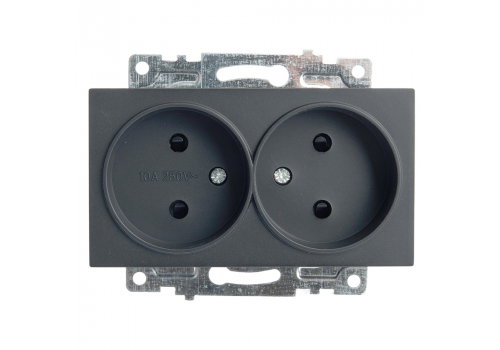 Розетка двойная 2P Stekker Катрин со шторками графит GLS10-7113-06 49421