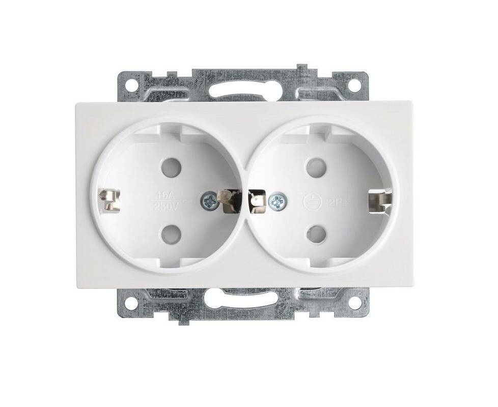 Розетка двойная 2P+PE Stekker Катрин со шторками белый GLS16-7114-01 39574