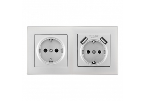Розетка двойная (двухпостовая) c USB Arte Milano SET06-2-47-1-40-1 silver