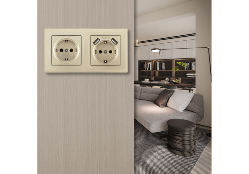 Розетка двойная (двухпостовая) с USB Arte Milano SET06-2-47-1-40-1 shampan
