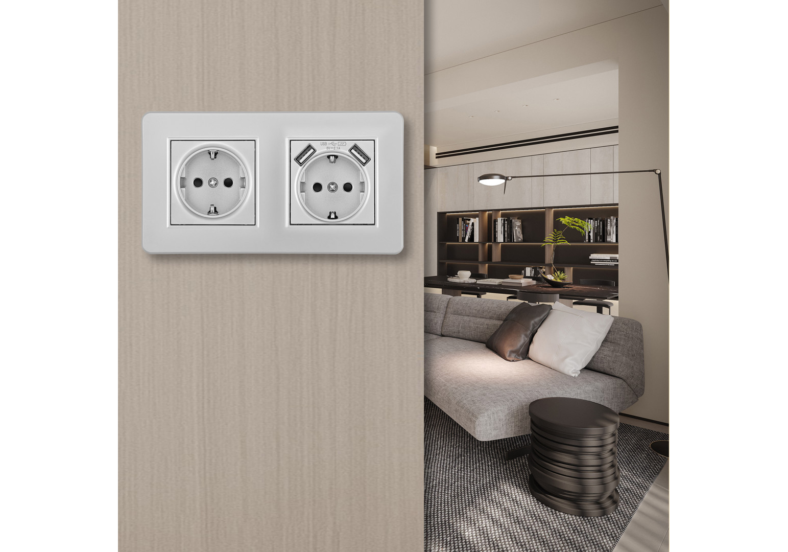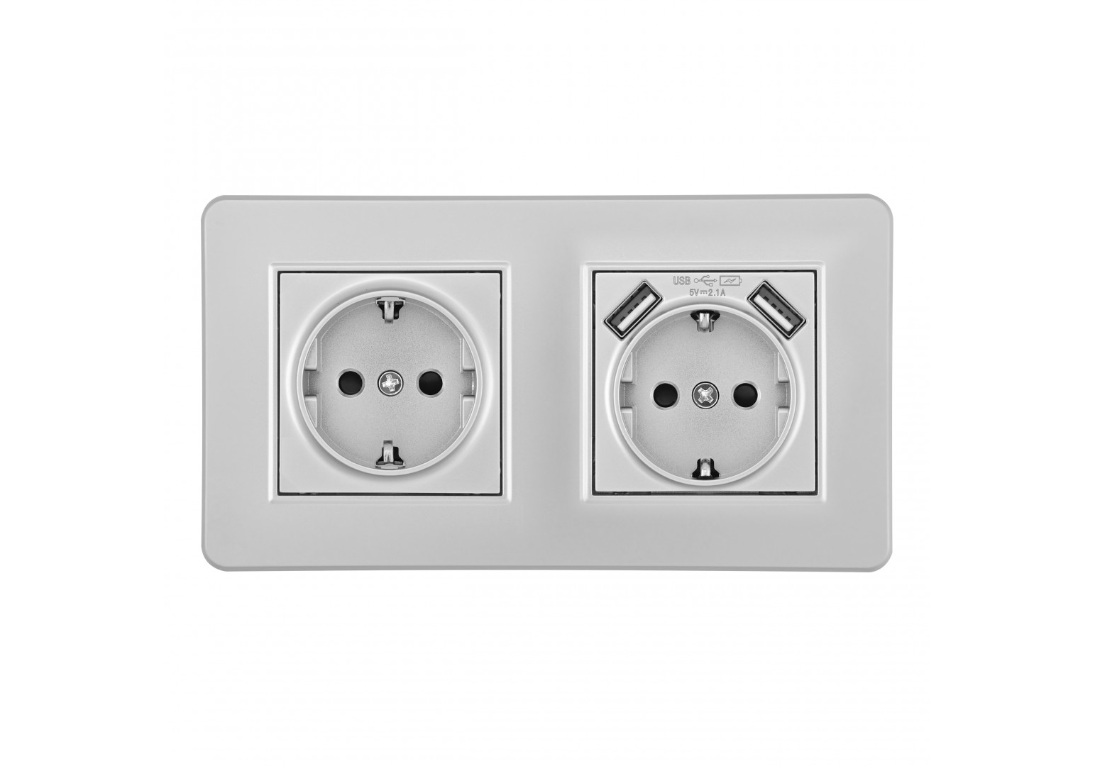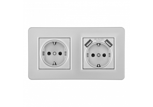 Розетка двойная (двухпостовая) с/з и шторками + USB Arte Milano SET16-2-47-1-40-1 silver