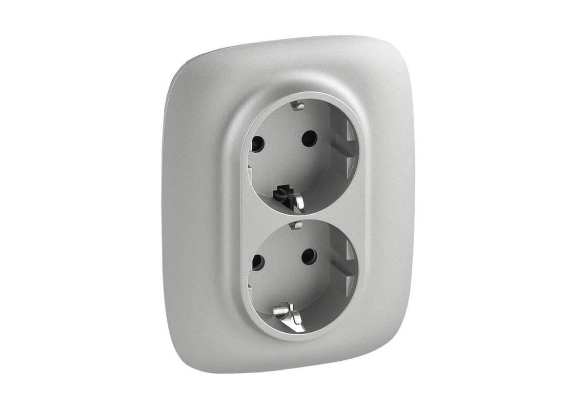 Розетка двойная Legrand Valena Allure 16A 250V с/з со шторками безвинтовой зажим алюминий 753926