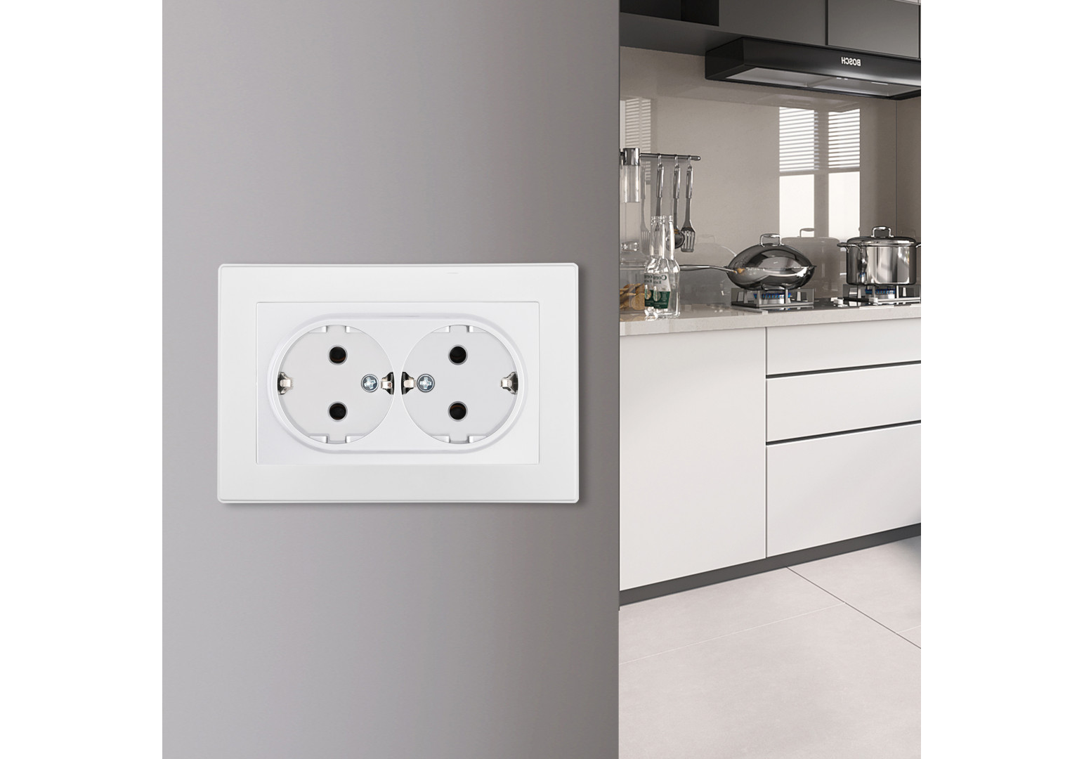 Розетка двойная с/з и шторками Arte Milano SET06-double-40-2 white