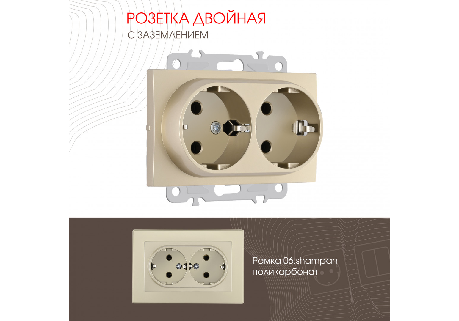 Розетка двойная с заземлением Arte Milano 206.40-2.shampan
