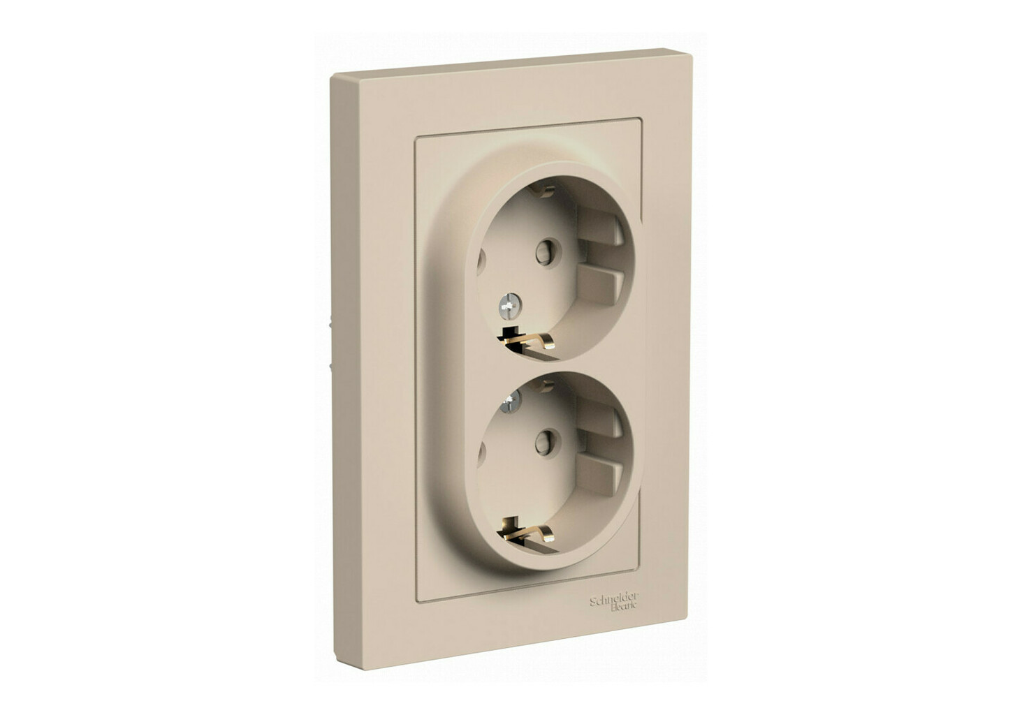 Розетка двойная Systeme Electric ATLASDESIGN, скрытый монтаж, с заземлением, со шторками, песочный