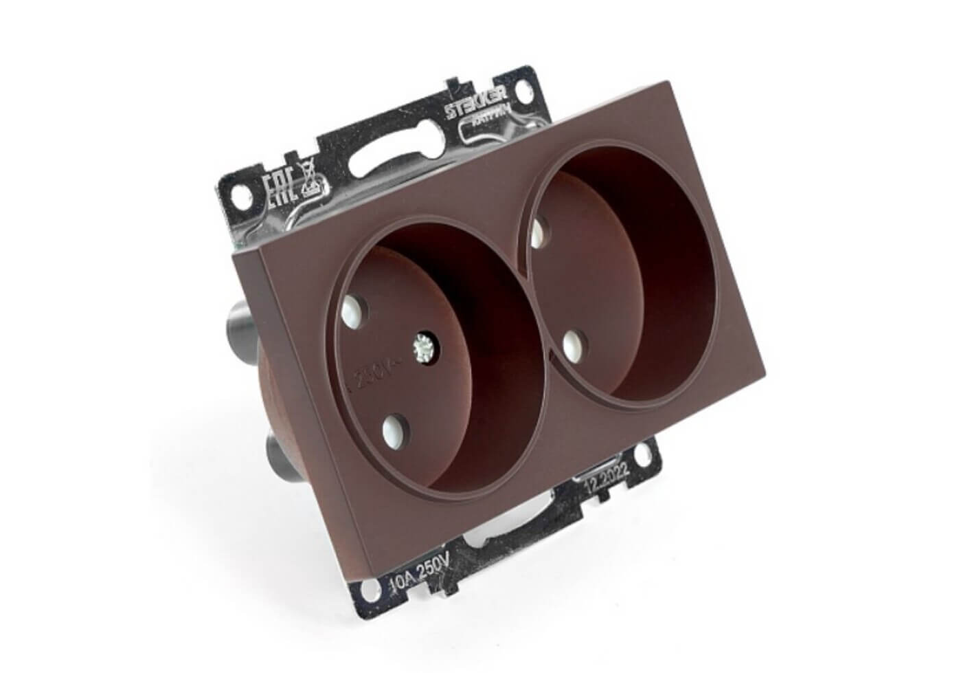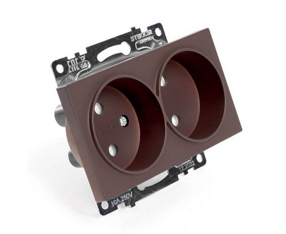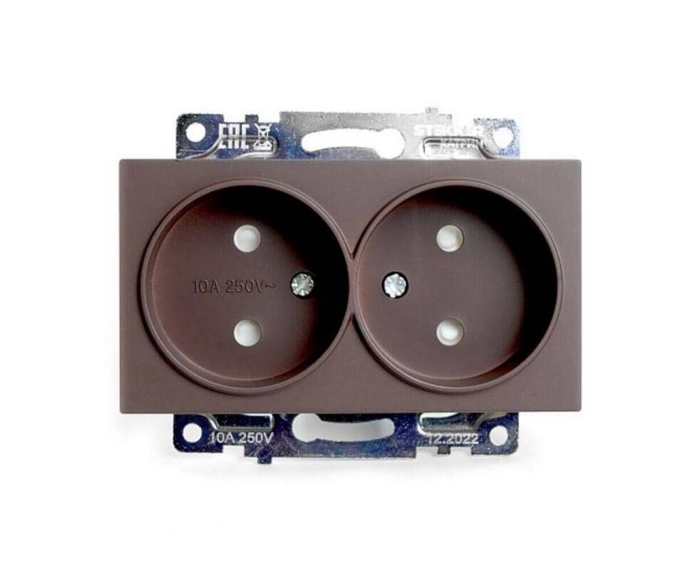 Розетка двухместная с защитной шторкой Stekker Катрин шоколад GLS10-7113-04 49026
