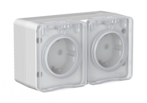 Розетка двухместная Systeme Electric ATLASDESIGN PROFI54, открытый монтаж, с заземлением, с крышкой, со шторками, серый