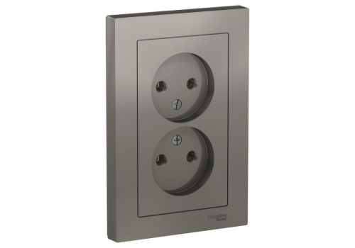 Розетка двухместная Systeme Electric ATLASDESIGN, скрытый монтаж, без заземления, сталь