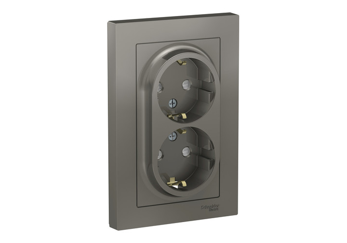 Розетка двухместная Systeme Electric ATLASDESIGN, скрытый монтаж, с заземлением, со шторками, сталь