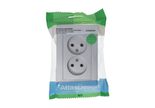 Розетка двухместная Systeme Electric ATLASDESIGN, скрытый монтаж, винтовые клеммы, алюминий
