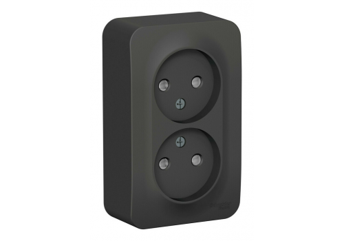 Розетка двухместная Systeme Electric BLANCA, открытый монтаж, без заземления, со шторками, антрацит
