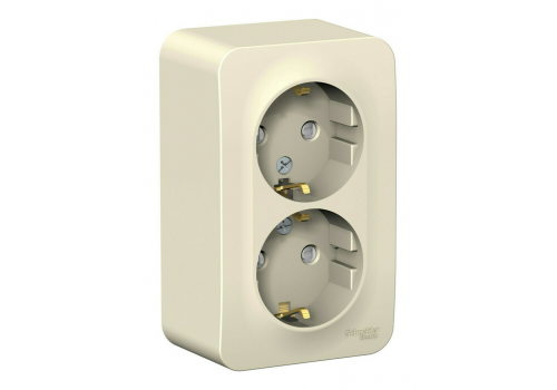 Розетка двухместная Systeme Electric BLANCA, открытый монтаж, с заземлением, со шторками, молочный