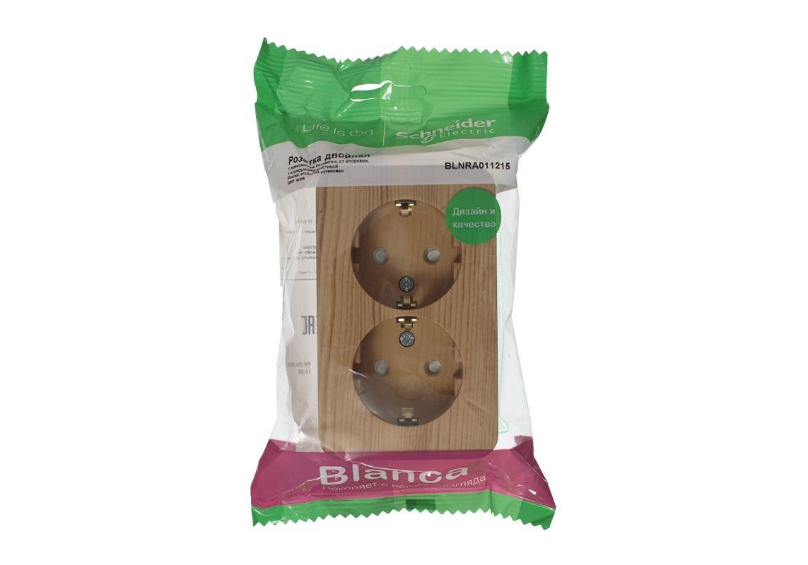 Розетка двухместная Systeme Electric BLANCA, открытый монтаж, с заземлением, со шторками, ясень