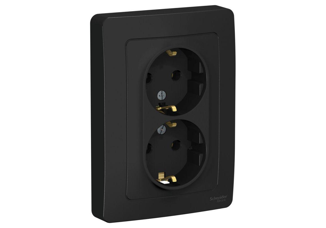 Розетка двухместная Systeme Electric BLANCA, скрытый монтаж, с заземлением, антрацит