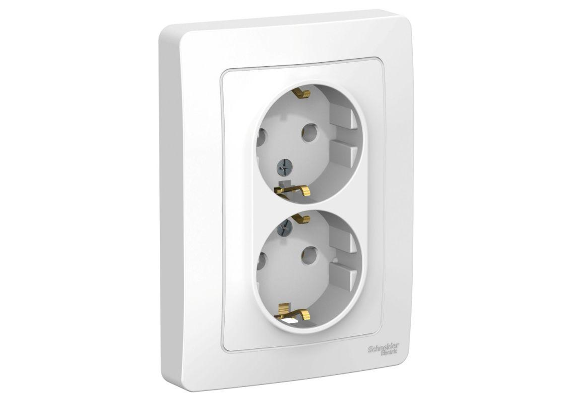 Розетка двухместная Systeme Electric BLANCA, скрытый монтаж, с заземлением, белый