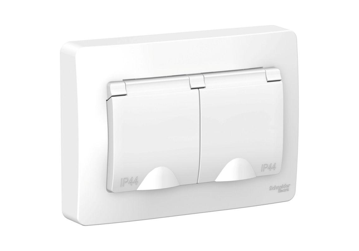 Розетка двухместная Systeme Electric BLANCA, скрытый монтаж, с заземлением, с крышкой, со шторками, белый
