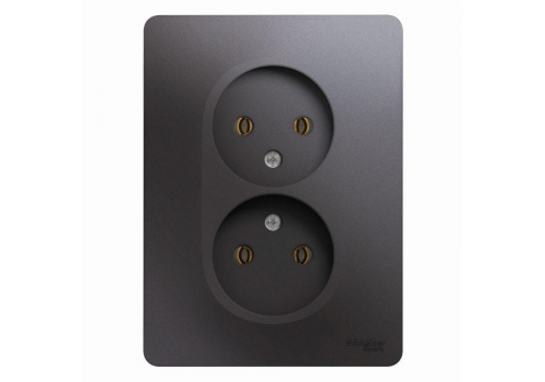 Розетка двухместная Systeme Electric GLOSSA, скрытый монтаж, без заземления, графит