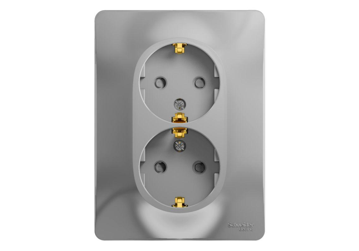 Розетка двухместная Systeme Electric GLOSSA, скрытый монтаж, с заземлением, со шторками, алюминий