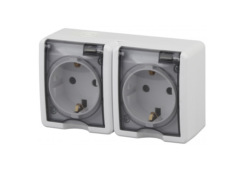 Розетка ЭРА Эксперт 2х2P+E IP54 со шторками 16A 250V 11-2404-01 Б0020718
