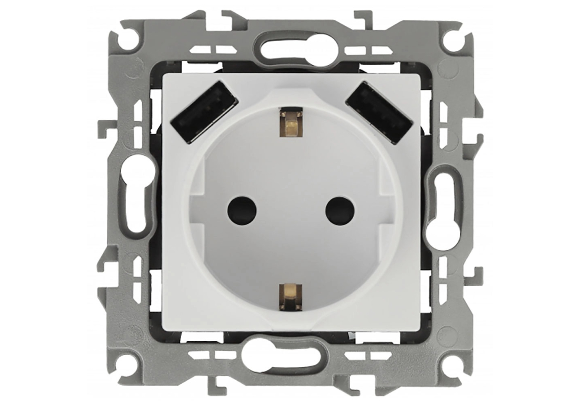 Розетка Эра Elegance 2P+E 16A-250В с защитной шторкой и 2xUSB 5В-3А 14-4109-01 Б0047867
