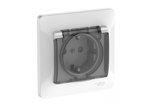 Розетка IP44 Systeme Electric GLOSSA, скрытый монтаж, с заземлением, с крышкой, со шторками, быстрозажимные клеммы, белый