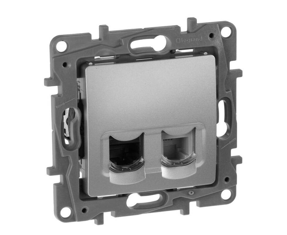 Розетка комбинированная RJ11 + RJ45 Cat.5e, алюминий
