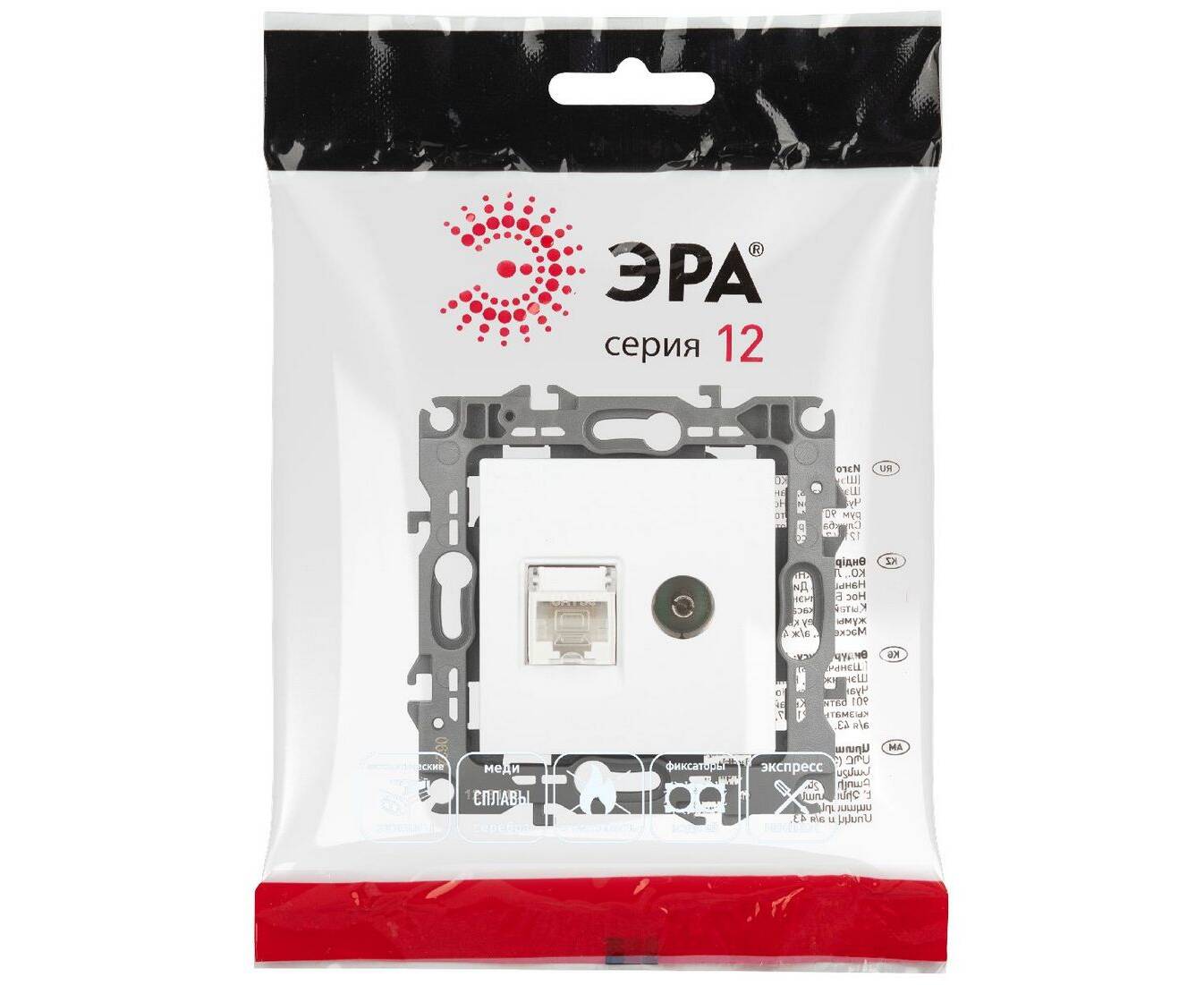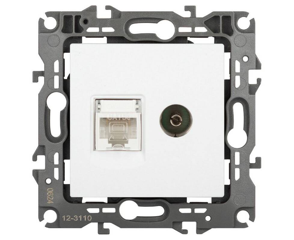 Розетка комбинированная RJ45+TV Эра 12-3110-01М Б0065691