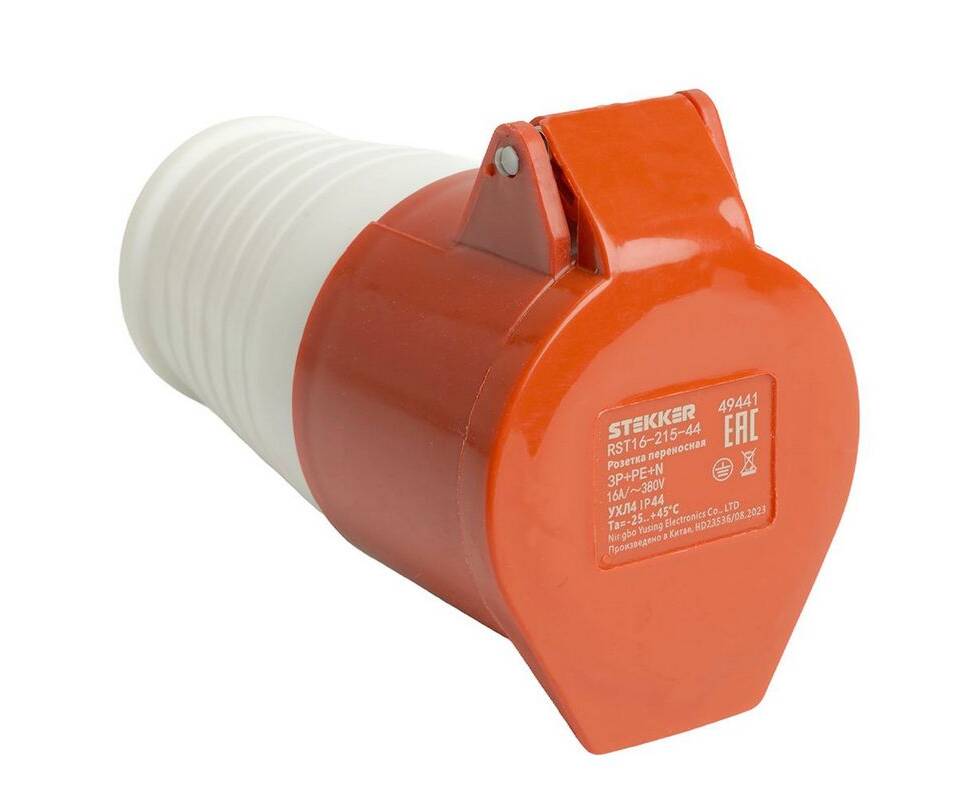 Розетка переносная 3P+PE+N Stekker с крышкой красный RST16-215-44 49441