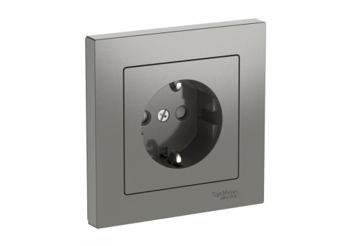 Розетка с рамкой Systeme Electric ATLAS DESIGN, скрытый монтаж, с заземлением, со шторками, быстрозажимные клеммы, сталь