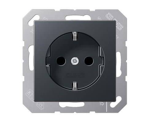 Розетка с заземлением безвинтовой зажим Jung A 500 антрацит A1520BFANM