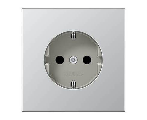 Розетка с заземлением безвинтовой зажим Jung LS 990 алюминий AL1520