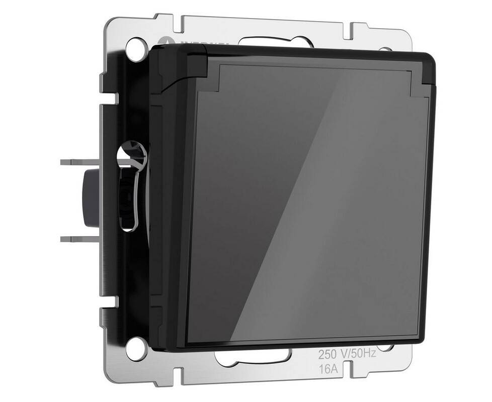 Розетка с заземлением, крышкой, шторками Werkel графит акрил W1171248 4690389197734