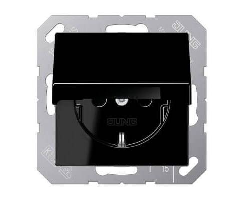Розетка с заземлением с крышкой безвинтовой зажим 16A 250V Jung A 500 черная A1520KLSW