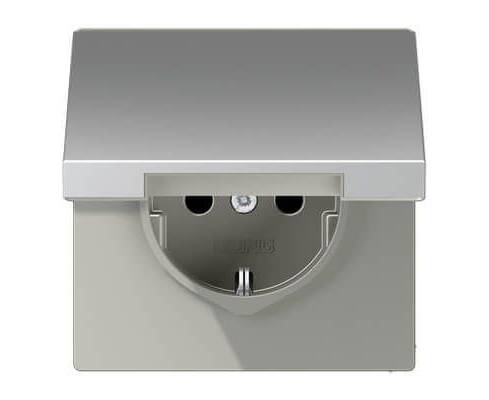 Розетка с заземлением с крышкой безвинтовой зажим Jung LS 990 алюминий AL1520KL