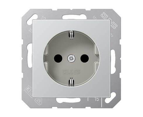 Розетка с заземлением с защитными шторками безвинтовой зажим Jung A 500 алюминий A1520KIAL