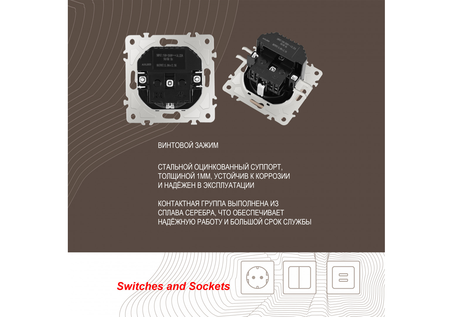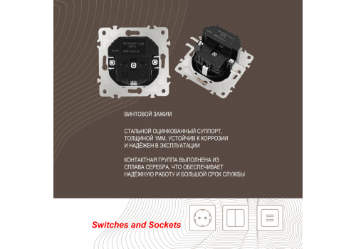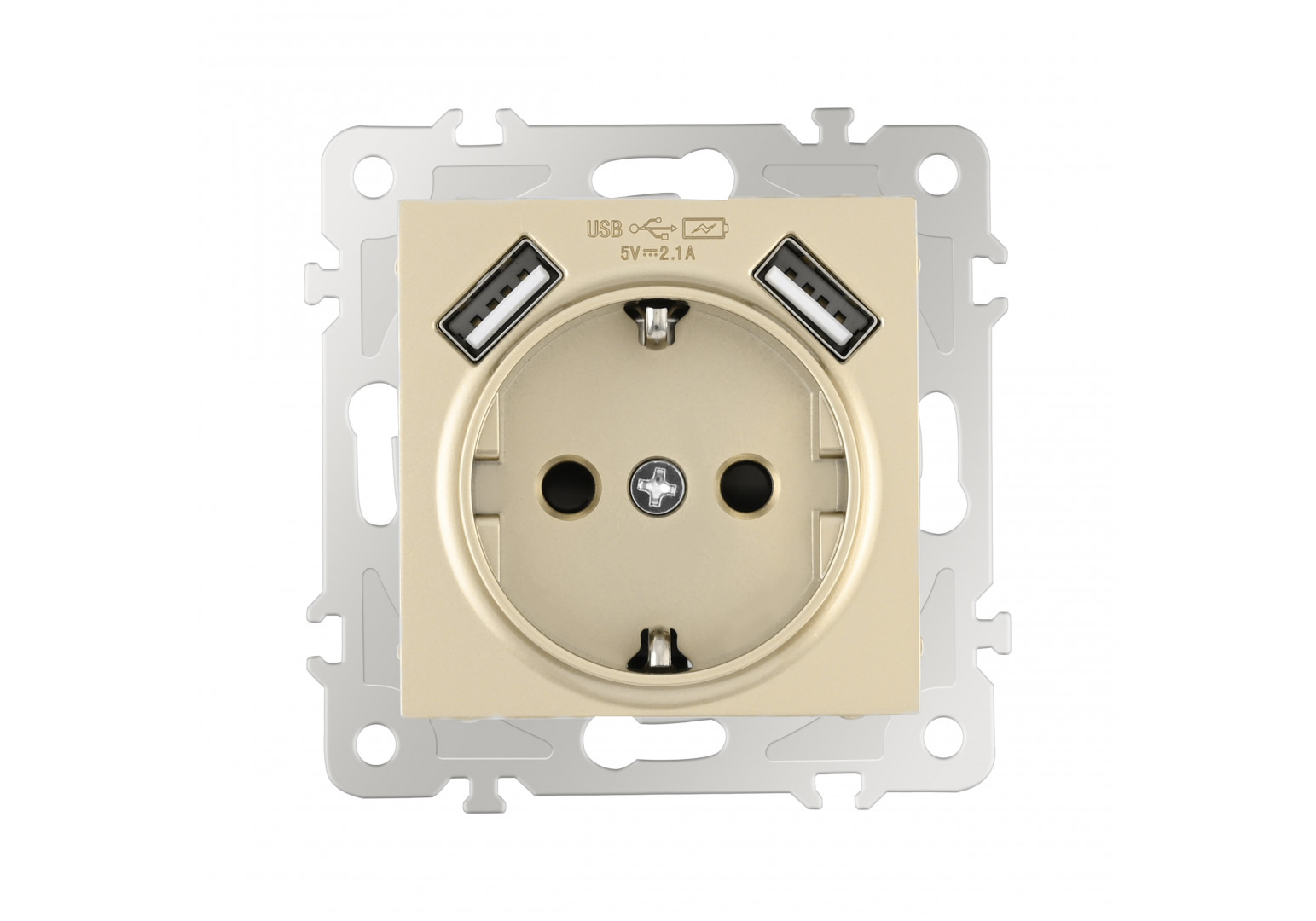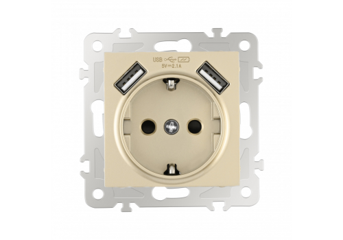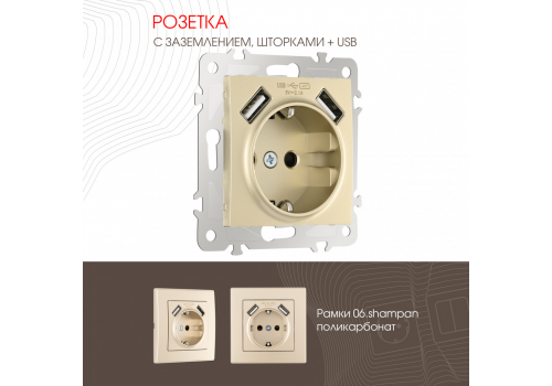Розетка с заземлением, шторками + 2 USB Arte Milano 206.47-1.shampan