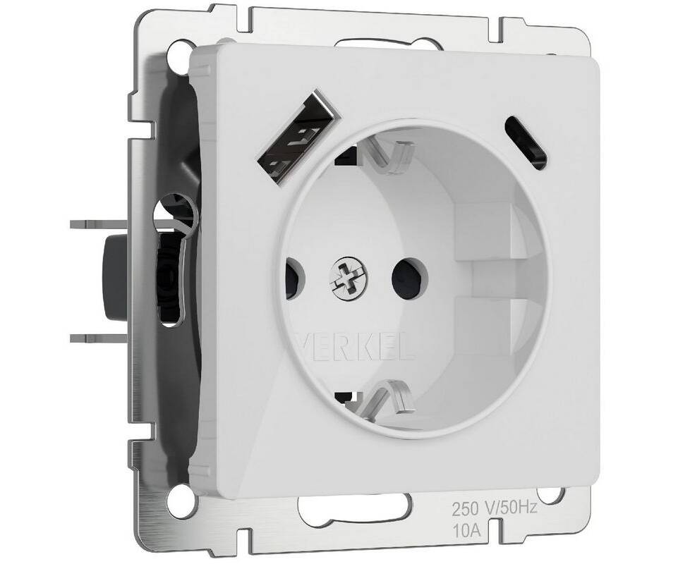 Розетка с заземлением, шторками и USB тип A+C Werkel 4690389197345 W1171741 a064014