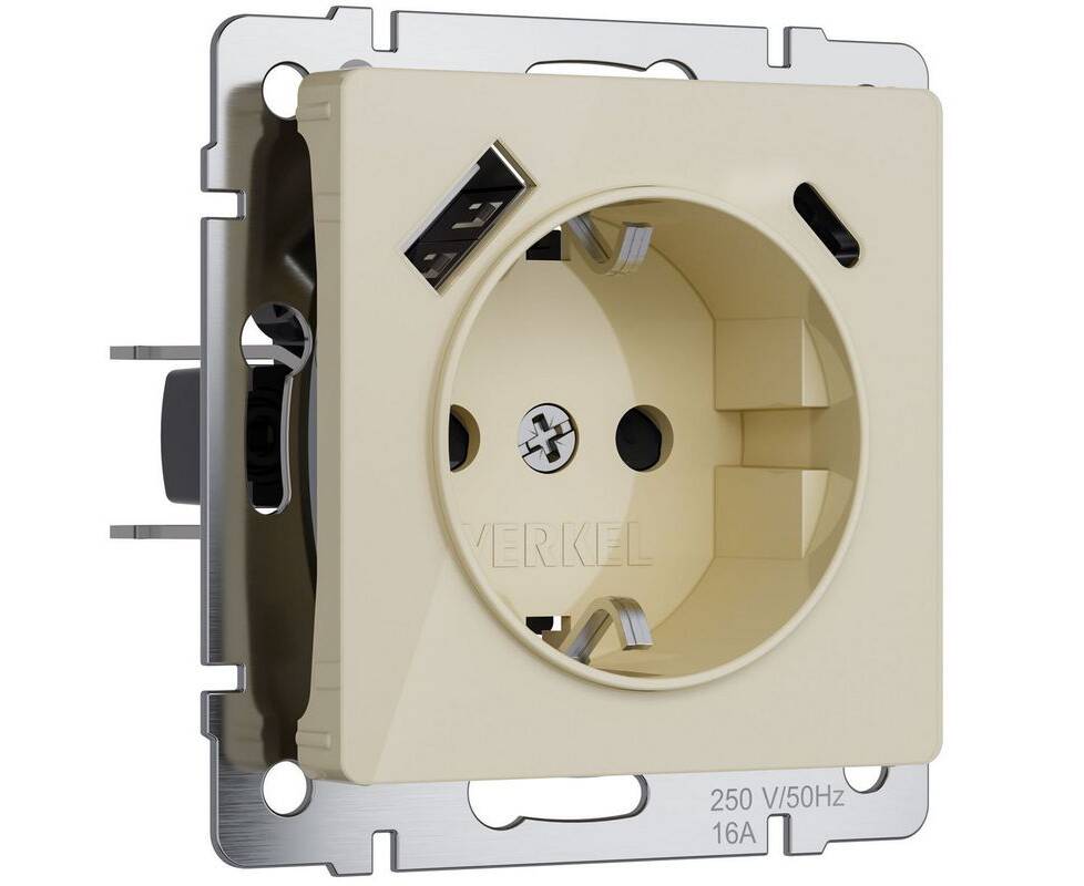 Розетка с заземлением, шторками и USB тип A+C Werkel айвори акрил W1171743 4690389197833