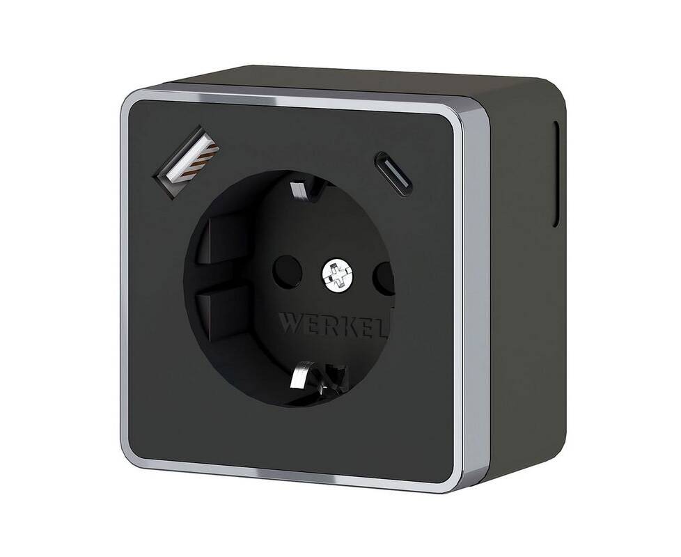Розетка с заземлением, шторками и USB тип A+C Werkel Gallant чёрный хром W5071735 4690389179655