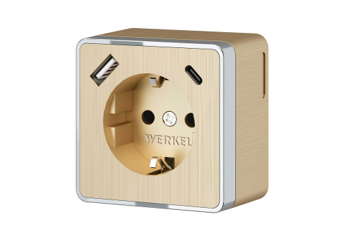 Розетка с заземлением, шторками и USB тип A+C Werkel Gallant шампань рифленый W5071710 4690389179631
