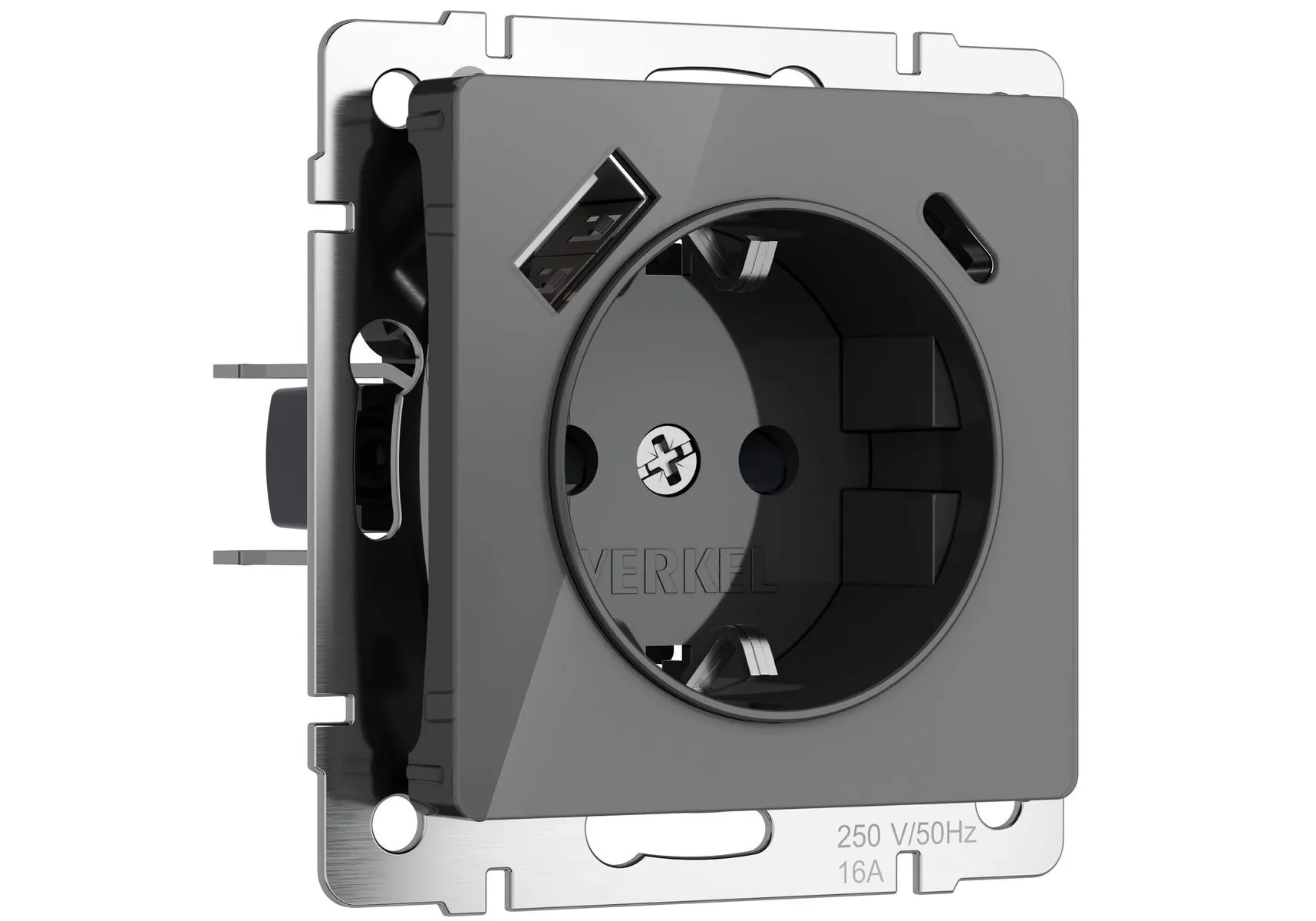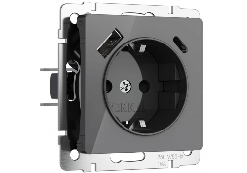Розетка с заземлением, шторками и USB тип A+C Werkel графит акрил W1171744 4690389197536
