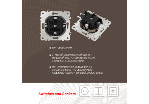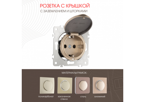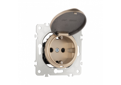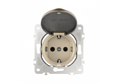 Розетка с заземлением, шторками и защитной крышкой Arte Milano 202.41-1.shampan